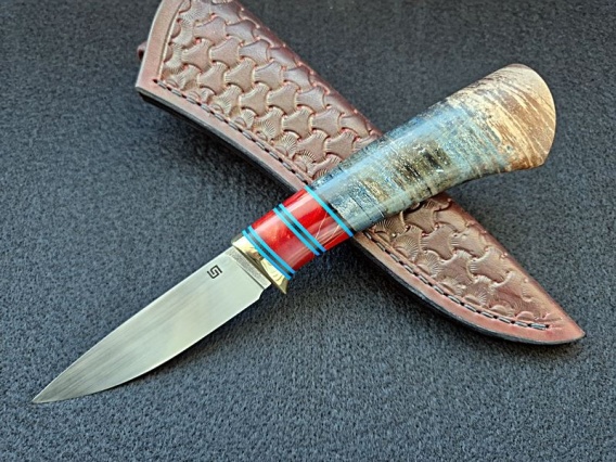 Rękojeść noża została wykonana z materiału o nazwie faffir oraz stabilizowanej brzozy, co nadaje mu niepowtarzalny i elegancki wygląd. Dodatkowo garda mosiężna chroni użytkownika przed przypadkowymi skaleczeniami podczas intensywnego użytkowania. Długość i szerokość ostrza wynoszą odpowiednio 85 mm i 18 mm, natomiast całkowita długość noża to 190 mm.